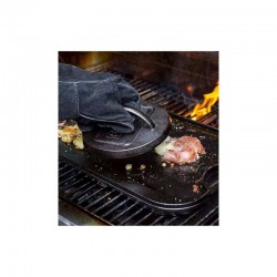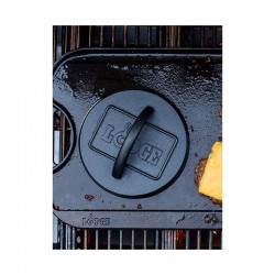 Pressa in ghisa pretrattata, robusta e resistente, di forma rotonda. La pressione consente di eliminare il grasso in eccesso delle carni, impedisce al bacon di arricciarsi e, quando preriscaldata, velocizza la cottura.