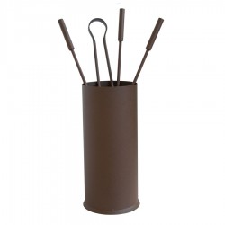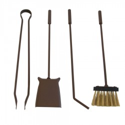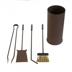 L'elegante kit comprende una paletta ed una scopa metallica per la pulizia del camino, attizzatoio per ravvivare la fiamma e un paio di pinze per posizionare la legna.