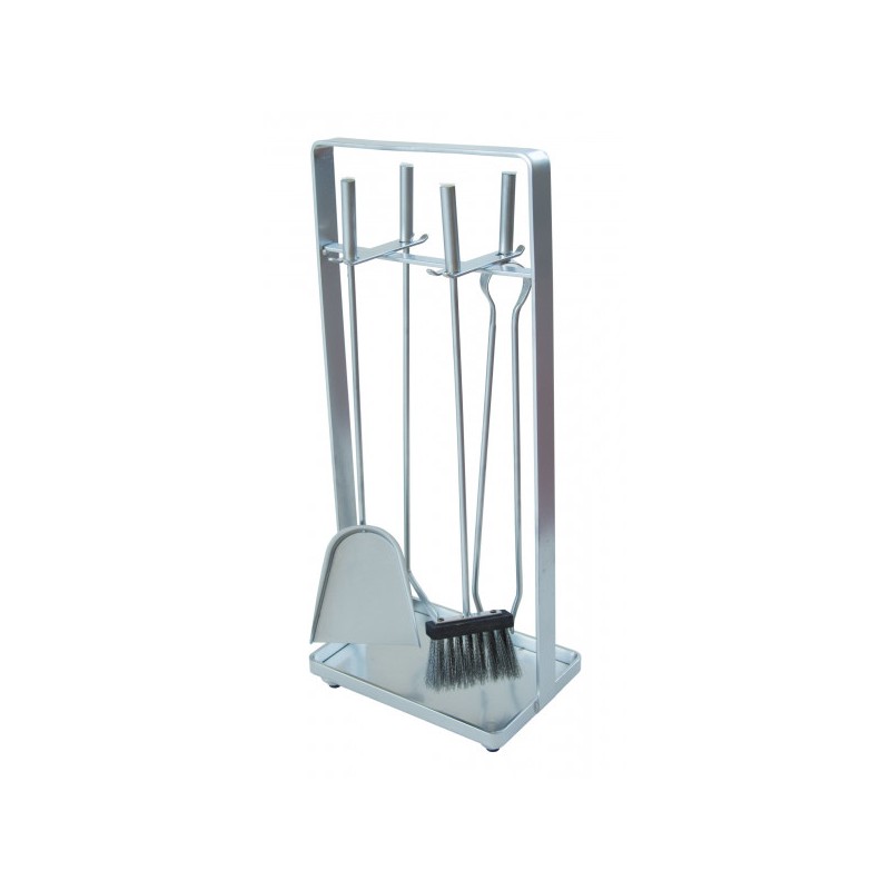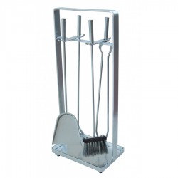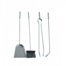 Questo elegante kit comprende una paletta ed una scopa per la pulizia del camino, un attizzatoio per ravvivare la fiamma e un paio di pinze per movimentare la legna.