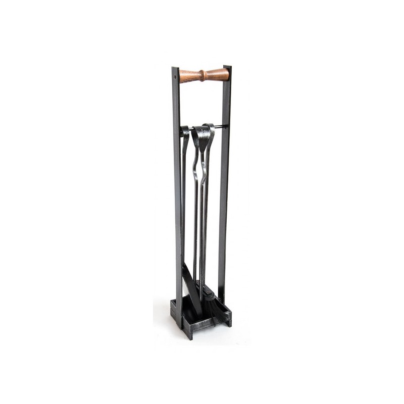 Comprende una paletta e una scopetta per la pulizia del camino e un paio di pinze per la movimentazione della legna.
