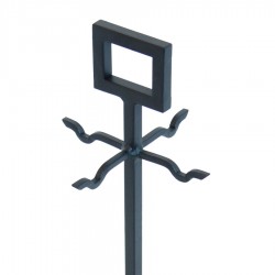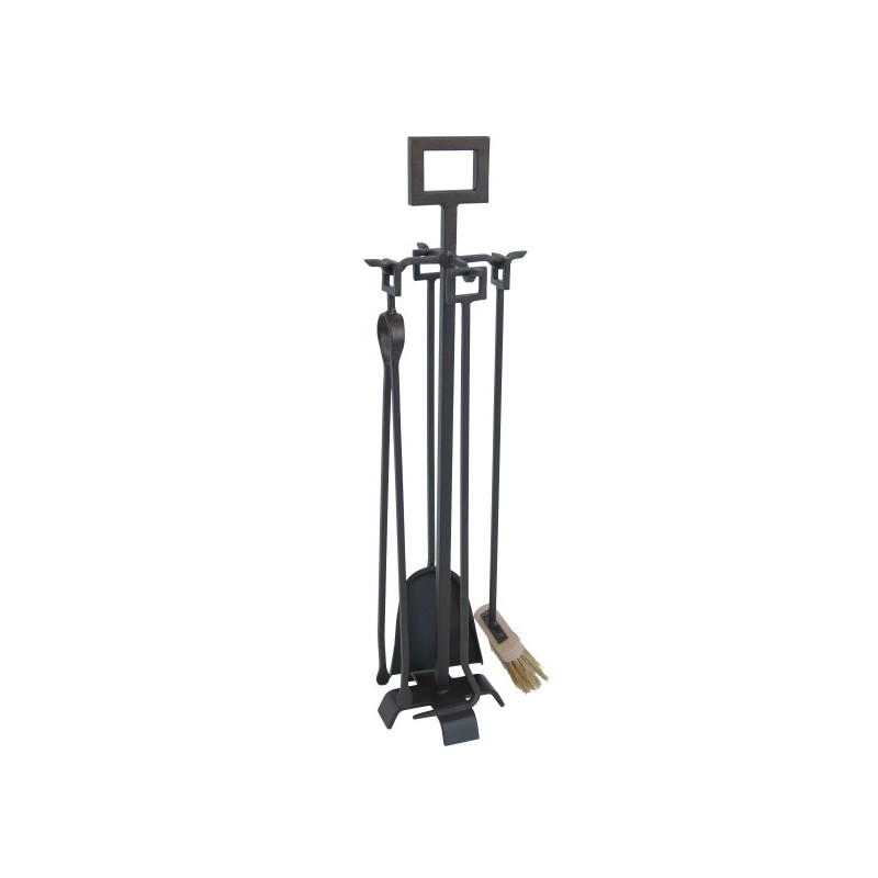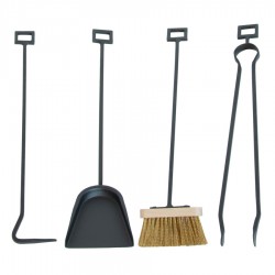Il gruppo camino ''Rocca graffite'' comprende gli strumenti essenziali per la cura del camino – attizzatoio, paletta, pinza e scopino – tutti dotati di manici ornamentali forgiati a mano.