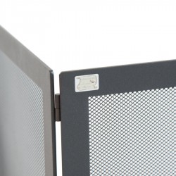 Questo robusto parascintille, è composto da un corpo principale da 60 cm e da un pannello laterale da 35 cm, collegati da due cerniere, che lo rendono adattabile al profilo del camino angolare con angolo sia destro che sinistro.