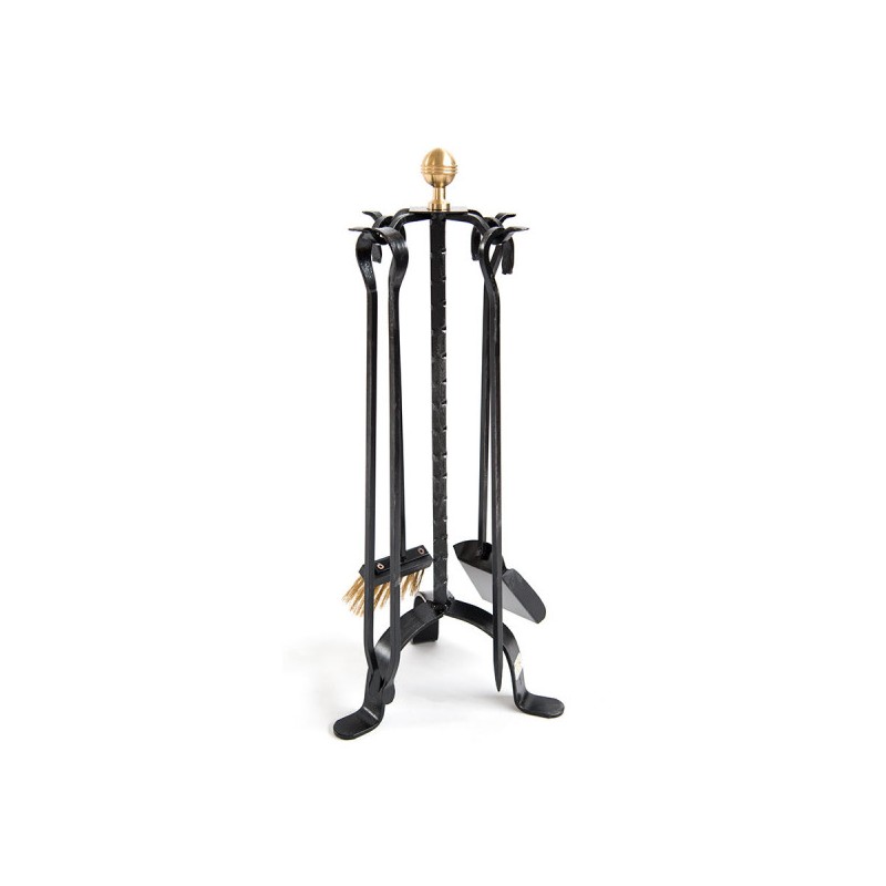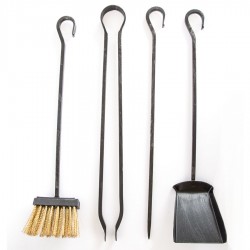 Il kit comprende il supporto, una paletta e una scopetta in setole d'ottone per la pulizia del camino, attizzatoio per ravvivare la fiamma e un paio di pinze per la movimentazione della legna.