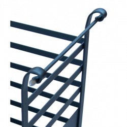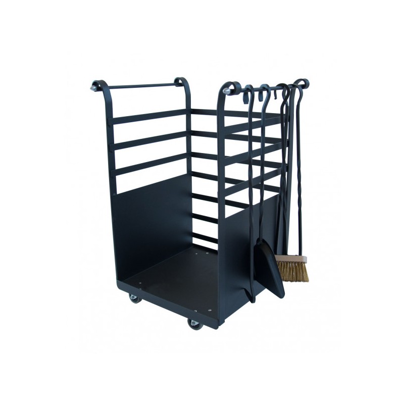Dotato di 4 ruote e manici per spostarlo, è aperto frontalmente per movimentare la legna con facilità.