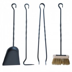Include un set di utensili per il fuoco professionali che comprende, paletta, scopetta, attizzatoio e pinze.