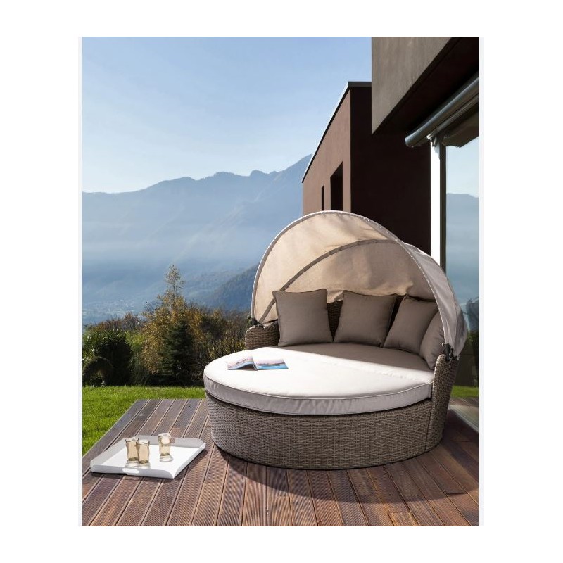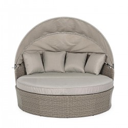 Daybed di Bizzotto è il daybed outdoor con struttura in alluminio verniciata a polvere di poliestere, intreccio in fibra sintetica semitonda, cuscini seduta e 4 cuscini 42x42 cm sfoderabili con tessuto spun poly in 100% poliestere, capottina richiudibile con pistone a gas e tessuto spun poly. Piedini regolabili. Elegante e sofisticato è il complemento d'arredo perfetto per valorizzare il tuo giardino e i tuoi spazi esterni.