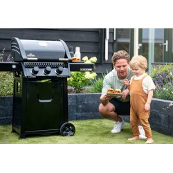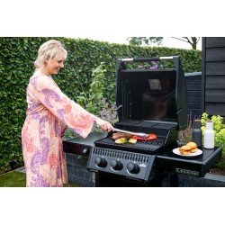 Barbecue a gas gpl con 3 bruciatori in acciaio inox. Dispone di un affidabile sistema di accensione JETFIRE, di un accuratissimo termometro ACCU-PROBE sul coperchio e di un vassoio raccogli grasso estraibile dalla parte anteriore. Grazie ai ripiani laterali che possono essere ripiegati in un attimo, questo barbecue può essere riposto senza occupare troppo spazio. Le griglie in ghisa WAVE , smaltate in porcellana, immagazzinano il calore del bruciatore sottostante con grande efficienza e lo trasmettono al cibo da grigliare.