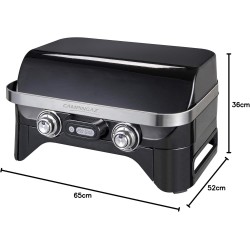 • GRANDEZZA COMPATTA, POTENZA: 2 bruciatori in acciaio inox con potenza di 5 kW danno un calore uniforme alla superficie della griglia; griglia da tavolo compatta (65x52x36 cm) per balcone e terrazza