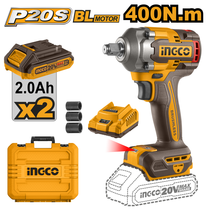 AVVITATORE AD IMPULSI BRUSHLESS CON 2BATTERIE 2AH INGCO