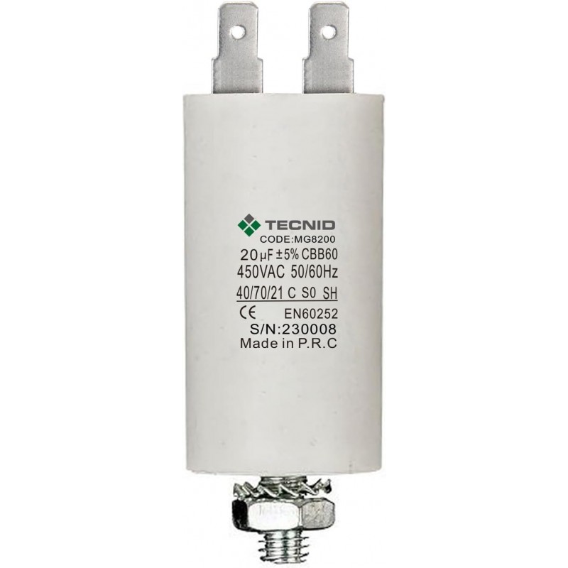 Condensatore di spunto per motori elettrici, 450V, capacità: 20µF, 4 pin / M8