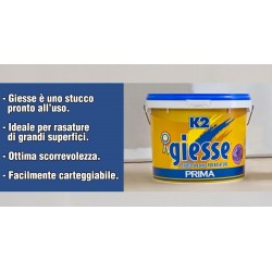 In pasta densa per grandi superfici. Pronto all'uso, al profumo di lavanda. Composto da carbonato di calcio, bianco meudon e resine viniliche. Il suo impiego come livellante di superfici ottimo su supporti interni a gesso e calcestruzzo, lastre di cartongesso ed intonaci vari. Tempo di indurimento 2 ore circa. In caso di spessori elevati (oltre 2 mm) si consiglia di riempire la superficie con più applicazioni successive. Facilmente carteggiabile, anche con disco ed un ottimo ricettore di tutti i tipo di pitture murali. Colore bianco. Confezione da 5 kg