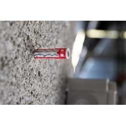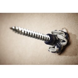 Innovativo ancorante bimateria. Si espande e si annoda, adattandosi automaticamente alla struttura del supporto. Completo di vite testa svasata piana, impronta