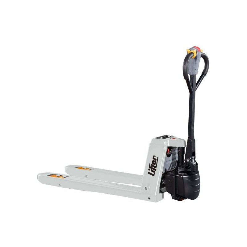 È molto facile da guidare grazie ai comandi intuitivi a portata di mano e alle dimensioni compatte: Facile da usare grazie all'impugnatura ergonomica e a tutti i comandi a portata di mano. Comodo da utilizzare in spazi ristretti come furgoni, sponde montacarichi o all'interno di ascensori. Quando la batteria è scarica, può essere rimossa manualmente. Design antiscivolo in pendenza per facilitare il parcheggio sui pendii, impedendo l'arretramento accidentale della macchina. Batteria facilmente sostituibile e facile da caricare. Stato batteria visibile da display. MANOVRABILITÀ La larghezza complessiva della macchina corrisponde alla larghezza delle forche. Questo rende l'unità il più compatta possibile e, insieme al ridotto raggio di sterzata, consente di lavorare in spazi ristretti. ROBUSTEZZA Telaio robusto progettato per garantire massima durata e resistenza alla torsione e ai carichi. Punte forche sagomate per facilitare l'ingresso / uscita dal lato chiuso del pallet. SICUREZZA Le caratteristiche di sicurezza standard della macchina sono i pulsanti di emergenza e l'elettrofreno. La copertura della ruota motrice protegge i piedi dell'operatore durante il lavoro e i componenti del carrello dalla collisione con oggetti. BATTERIA AL LITIO PLUG-IN & OUT Batteria al litio esente da manutenzione con una lunga durata. Il sistema plug-in&out consente una facile sostituzione della batteria in pochi secondi, senza l'utilizzo di cavi. La macchina può essere dotata anche di una seconda batteria supplementare, consentendo un lavoro continuo e senza sosta. Caricabatterie esterno 48V - 2A. MANUTENZIONE SEMPLICE Costruzione semplice con un design che permette una facile manutenzione. Display con visualizzazione dei codici di errore per facilitare la rapida risoluzione dei problemi. Batteria Li-Ion esente da manutenzione.