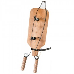 Composto da una morsa in ferro battuto fissato su una base di legno, è regolabile per contenere prosciutti di varie dimensioni.