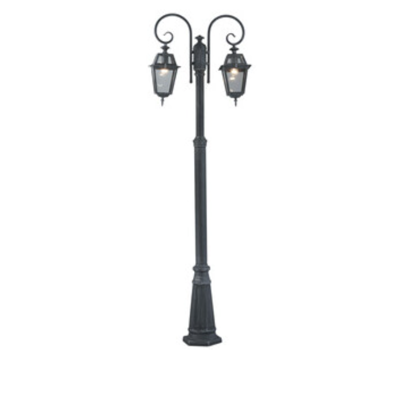 Corpo in alluminio pressofusoverniciato con polveriepossidiche.Colore grigio ghisa.Schermo di protezione in vetro.LampioneAltezza 220 cm