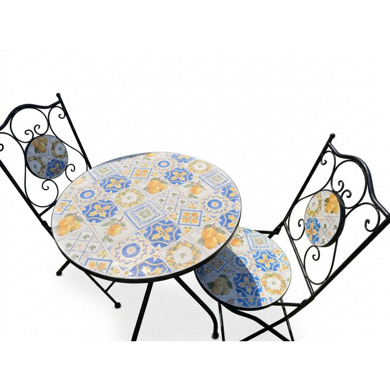 SET TAVOLO MOSAICO CON 2 SEDIE PIGHEVOLI